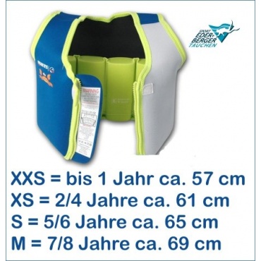 Durch den Schnitt der Weste lernen Kinder die richtige Schwimmhaltung von Beginn an. Sie fühlen sich mit der Weste sicher im Wasser aufgehoben.Wird die Schwimmerfahrung im Verlauf besser, können die Schwimmkörper nach und nach entnommen werden.
