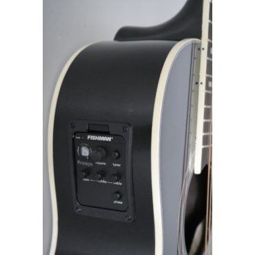 Die indra-s-BK, Westerngitarre 41 von Marwell fällt schon alleine durch ihr edles Aussehen auf. Die elektroakustische Westerngitarre bildet mit ihrer schwarz lackierten Farbe und der vergoldeten Mechanik einen angenehmen Kontrast. Die aus massiver Fichte, Palisander und Ahorn befertigte Gitarre ist äußerst robust und jeder Spieler wird lange Freude an diesem schönen Instrument haben.