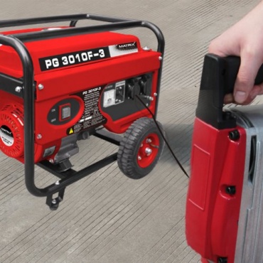 Dieser Matrix Stromgenerator besitzt 2500 - 2800 Watt. Er ist ausgestattet mit einem Ein-Zylinder 4-Takt-Benzinmotor. Einfaches und sicheres Starten ist anhand eines Seilzugstarters gegeben. Der Generator besitzt zwei Steckdosen zu je 230 Volt. AVR-Spannungsregelung vorhanden sowie Überlastschutz für die Sicherheit. Des weiteren ist der Generator ausgestattet mit einer Ölmangelsicherung, Voltmeter und Tankanzeige.