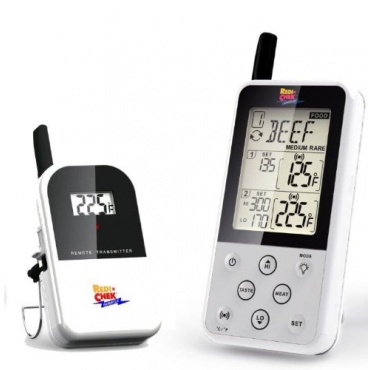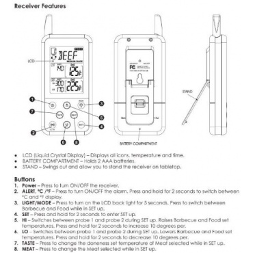Das Grillthermometer von Maverick signalisiert Ihnen über einen Ton, wenn Sie sich zu weit vom Sendegerät entfernen. Ihr Empfänger liefert Ihnen aber nicht nur diese Werte. Untergebracht ist die hochwertige Technik, in einem sicheren Kunststoffgehäuse mit sehr ansprechende Optik. Sende- und Empfangsgerät verfügen über jeweils ein sehr gutes und sehr gut ablesbares Display, dass Ihnen jeweils alle Werte auf einen Blick liefert. Dieses Thermometer können Sie in vielen Bereichen zur Lebensmittelüberwachung und den geforderten Temperaturen einsetzen. Das Gehäuse ist sehr robust und hält Feuchtigkeit und Erschütterungen sicher aus. Dieses technische Equipment wird mit AAA Batterien betrieben, die im Lieferumfang enthalten sind.