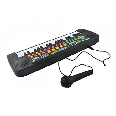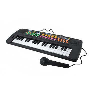 Das Keyboard 37 Tasten Piano Klavier unterstützt die Entwicklung der rhythmischen sowie musikalischen Fähigkeiten und ermöglicht sogar die Aufnahme eigener Musikstücke. In das Keyboard integriert ist ein Mikrofon mit Radio. Es spielt 8 Musikinstrumente, lässt das Tempo anpassen und hat 5 verschiedene Demo-Songs parat. Das Keyboard besitzt die Fähigkeit zur Aufnahme und Wiedergabe und hat eine eigene Ausschaltfunktion. Die Lautstärke ist regelbar.