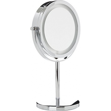 Der Kosmetikspiegel eignet sich hervorragend zum Schminken. Dank der vergrößernden Spiegelfläche ist das Gesicht gut zu erkennen. Die LED-Beleuchtung sorgt auch dann noch für ausreichend Licht, wenn sich die Betrachterin zum Schminken über den Spiegel beugt. Als Energieversorgung dienen Batterien, die bei häufigem Gebrauch der Beleuchtung regelmäßig ausgetauscht werden müssen. Die verchromte Oberfläche fügt sich optisch gut ins Badezimmer ein und schützt den Schminkspiegel vor Korrosion. Der flache Fuß bietet dem Spiegel ausreichend Standfestigkeit.