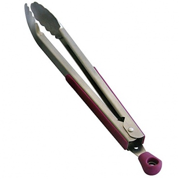 Die Zange von Oramics zeichnet sich durch ihr modernes Design aus. Edelstahl wird mit fröhlichem Lila kombiniert und die Griffe der Zange sind mit Silikon beschichtet, das die Wärme nicht leitet und deshalb die Hände beim Kochen schützt. Durch die Beschichtung liegt die Zange auch ausgezeichnet in der Hand. Wird die Zange nicht gebraucht, so kann sie mit einem durchdachten Verschlusssystem geschlossen werden und an der dafür vorgesehenen Oese in der Küche aufgehangen werden. Die dekorative Zange eignet sich auch zum Servieren bei Tisch.
