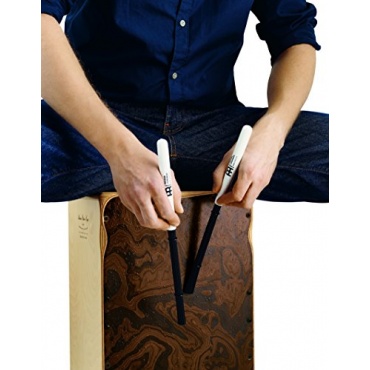 Bei dem Cajon geht es darum mit den Handflächen möglichst laute Geräusche zu bekommen. Nun kann es auch sehr schmerzhaft für den Musiker sein, immer wieder gegen die Seitenflächen eines solchen Cajon zu schlagen. Aus diesem Grund hat sich der Hersteller Meinl etwas tolles ausgedacht. Hier finden sich nun so genannte Cajon Brush. Das sind Schlagstöcke mit Borsten für das Instrument. Diese sind auf eine bestimmte Stelle des Cajon fixiert und haben hier die Aufgabe, den Ton perfekt abzugeben. Dann können sich in jedem Fall die Hände ein wenig ausruhen.