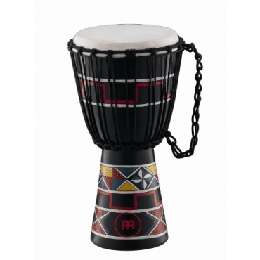 Die Djembe Trommel von Meinl Percussion ist mit einem echten Ziegenfell bespannt, das von einer schwarzen Schnurspannung gehalten wird. Diese Djembe erfreut sich eines kräftigen Klangs und durch unterschiedliche Spieltechniken ist es möglich, eine große Anzahl von verschiedenen Tönen zu erzeugen. Das Instrument eignet sich wunderbar zum Soloeinsatz und kann auch in einem Percussion Ensemble gut zur Wirkung kommen. Das Instrument von Meinl Percussion ist auch für den professionellen Einsatz geeignet.
