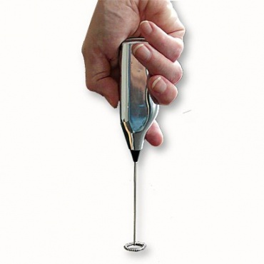 - sehr klassisches und zugleich handliches Design, Grifflänge etwa 10 cm, sehr einfach zu bedienen, batteriebetrieben mit 2 x AA R06 1,5 V, kann auch zum Aufschäumen von anderen Flüssigkeiten außer Milch genutzt werden