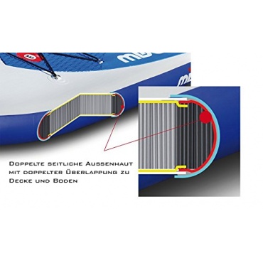 Das Standup Paddel Board ist ein Allround-Inflatable. Es ist sehr stabil und hält selbst kleinen Stößen mühelos stand. Dabei überzeugt es mit einem Gewicht von nicht einmal 10 Kilo, wodurch dich das Board problemlos transportieren lässt. Es ist leicht und handlich, wodurch es mehr Sportlichkeit verspricht. Dabei bietet es ein ansprechendes Design. Das Standup Paddel Board kann bis zu 190 Kilogramm belastet werden und lässt sich daher problemlos von bis zu zwei Personen nutzen.