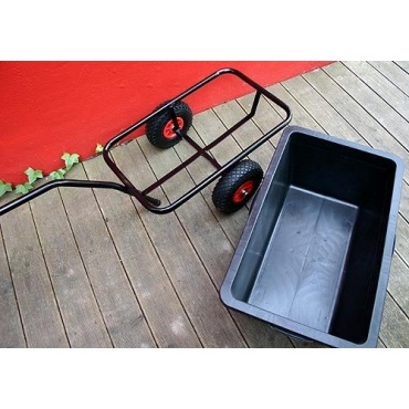 Der Rahmen ist aus pulverbeschichtetem Stahlrohr gefertigt und mit Deichsel sowie Anhängerkuppel ausgestattet. Ein Stützfuß sorgt für sicheren Stand. Mit der leicht verständlichen Montageanleitung ist der Anhänger schnell zusammengebaut. Beladen kann man ihn grundsätzlich mit allem, was transportiert werden muss. Er ist also vom Einkauf bis zum Garteneinsatz für annähernd alle Arbeiten geeignet. Einschränkend muss allerdings bemerkt werden, dass die Zuladung auf 30,5 Kilo begrenzt ist. Für eine 90-Liter-Wanne ist das etwas wenig.