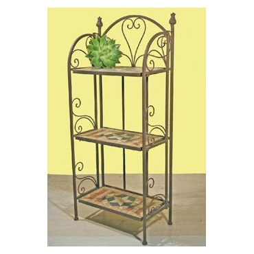 Das massive Mosaikregal bietet sowohl für den Innen- als auch den Außenbereich eine dekorative Präsentationsmöglichkeit für Ihre Blumen und Pflanzen. Das verspielte Gestell kombiniert geschmackvoll weiche Metallformen mit aufwendigen sternförmigen Mosaikmustern. Die einzelnen Mosaiksteinchen sind in warmen und natürlichen Farben gehalten. Die drei Ablageflächen bieten viel Platz für die individuelle Gestaltung.