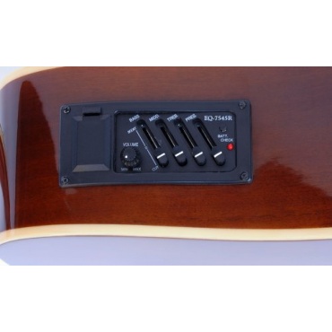 Besonders praktisch zeigt sich der integrierte Tonabnehmer sowie der Equalizer. Batterien hierfür werden ebenfalls direkt mitgeliefert. Der Saitenhalter ist aufgeleimt. Dies sorgr für eine optimale Entfaltung des Klangs und sorgt für keinerlei Beeinträchtigungen. Steg, Sattel sowie die Abrichtung der 20 Bünde können einfach und schnell ohne Probleme und großen Aufwand eingestellt werden.