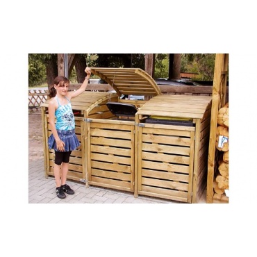 Da die Mülltonnenbox von meingartenversand aus drei einzelnen Deckeln besteht, lässt sich der Müll schnell und einfach einwerfen. Durch die ebenfalls drei vorhandenen Türen, kann man die Mülltonnen einzeln entnehmen, ohne großem Aufwand. Zu ihrem einwandfreien Einsatz in Freien dient die mitgelieferte Rückwand, die die darin aufbewahrten Mülltonnen zusätzlich vom Regen und Dreck schützt.