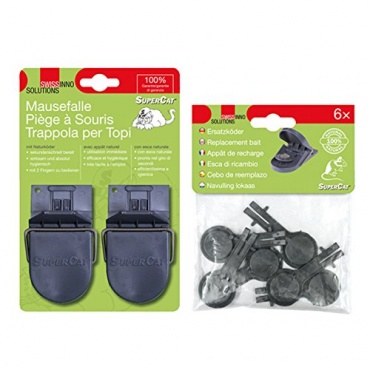 Die SuperCat Mausefalle bietet eine saubere und umweltfreundliche Nagetierbekämpfung und vereint Mausefalle und Naturköder in einem. Die Naturködereinsätze wirken sehr attraktiv auf Mäuse und Ratten und locken diese mit ihrem Duft an. Der Köder ist ohne Gift und basiert rein auf dem Prinzip der Anlockung. Nach dem entfernen des Köderdeckels und dem Einsetzen in die Mausefalle ist diese binnen Sekunden einsatzbereit.