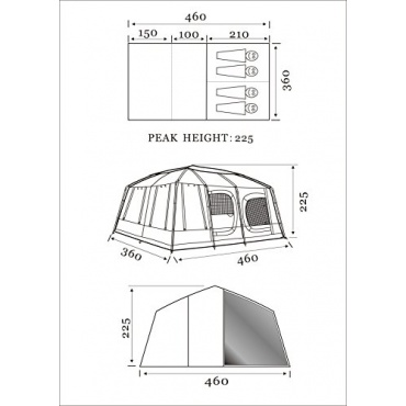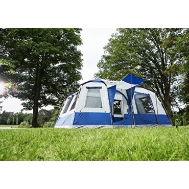 Die Schlaf- und Wohnräume des Zeltes können nach Geschmack und Bedarf eingeteilt werden. Dieses Zelt kann sehr leicht aufgebaut werden. Unterstützt wird der leichte Aufbau durch ein farbliches Stecksystem und ein passgenaues Verbundgestänge. Das Zelt hat eine Wassersäule von 3000mm. Mit der Grundfläche von 16,56 m² bietet dieses Zelt den Nutzern genügend Platz. Durch das kleine Vordach gerät man in einen Zwischenraum, in den man bequem einen Tisch für 4 Leute stellen kann.
