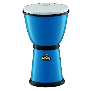 Ein Djembe ist ein aus Afrika stammendes Musikinstrument, welches aus hohlen Baumstämmen verarbeitet wurde. Hölzerne Djembes müssen jedoch vor Witterungsbedingungen geschützt werden. Nicht so das Nino Percussion NINO18BABS Djembe blau. Durch die Verarbeitung aus stabilem Kunststofffell und einem Kessel aus ABS Plastik ist es auch für den Außeneinsatz bestens geeignet. Für den leichten Transport ist ein Nylongurt im Lieferumfang enthalten