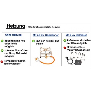 Der Räucherofen ist 80 x 40 x 27 Zentimeter groß. Er kann für Fleisch, Fisch, Käse, Tofu und Gemüse genutzt werden. Durch die Vielseitige Anwendung lohnt sich die Anschaffung eines Räucherofens. Er hat ein gutes Preis-/Leistungsverhältnis und ist sehr stabil. Der Ofen lässt sich leicht reinigen. Das Räuchern im Ofen ist mit Holz oder Kohle möglich. Die Hitze kann stufenlos eingestellt werden.