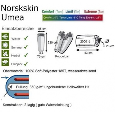 Norskskin Mumien Schlafsack Umea 4 Jahreszeiten