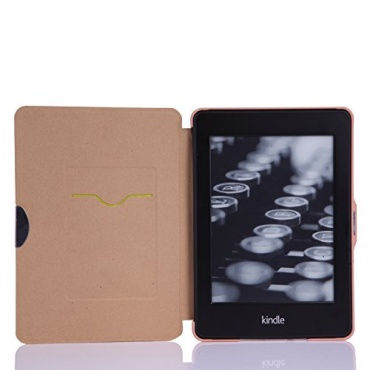 Die schicke Hülle liegt optimal in der Hand, beim Lesen kann die Klappe einfach nach hinten geklappt werden. Das praktische Innenfach bietet Platz für kleinere Zettel oder Visitenkarten. Das Kindle kann kinderleicht in der Hülle fixiert werden und löst sich nicht mehr so schnell heraus. Die Sleep und Weck Funktion ermöglicht nicht nur eine komfortable Bedienung des Kindles, diese Funktion spart Strom ein, so hält der Akku des Kindles länger.