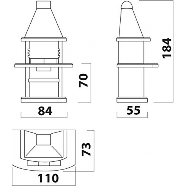 Mit einer Gesamthöhe von 184 Zentimetern sieht der Kamin beeindruckend aus und bietet mit einer Arbeitshöhe von 70 Zentimetern eine optimale Höhe zum Kochen. Der Kamin ist mit einem Grillrost ausgestattet, das aus rostfreiem Edelstahl besteht. Der Grillrost hat zwei Griffe aus Holz, mit denen es leicht abgenommen werden kann. Ein Aschekasten, der ebenfalls aus Edelstahl gemacht ist, sorgt dafür das sich der Kamin leicht reinigen lässt. Der Kamin ist zum Verbrennen von Holz geeignet.