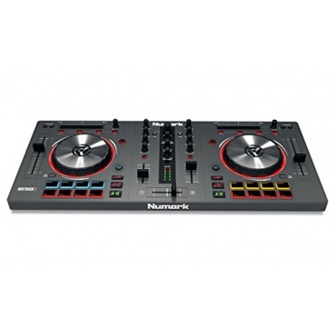 Der Mixtrack Pro III 2-Deck DJ-Controllervon Numark überzeugt mit umfangreicher Ausstattung und verfügt über insgesamt sechzehn Pads und zwei hochwertige Metall-Jogwheels. Effekte können über zwei Touchstrips gesteuert und Trackstellen gezielt angespielt werden. Pro Kanal vefügt der Mixtrack DJ-Controller über drei Regler zum Einstellen von EQs und Filtern.