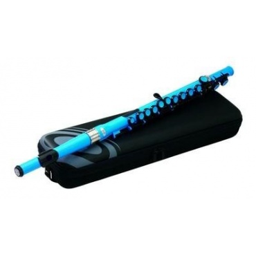 Der Korpus der Flöte besteht aus einem Leicht-Polymer. Es ist sehr wichtig, das diese Flöte gut in der Hand liegt und das ist der rutschhemmenden Einlage zu verdanken. Die Farbe der Flöte heißt Electric Blue. Die Flöte besitzt Einstellschrauben und auch eine Einstellbare Mechanik. Die Krone ist gesichert. Hier ist sehr viel positives vorhanden. Es gibt Edelstahlachsen und Silikonpolster. Zudem kommen noch silberfarbene Klappeneinlagen und auch Fingerbuttons, die angesetzt werden können.