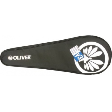 Diese Oliver Fullsize Hülle bietet einem Badmintonschläger aber auch Squashschläger Schutz. Optisch macht diese schwarze Schlägertasche mit gewebter Stoffoberfläche in Weiß einen sehr schönen und modischen Eindruck. Das Logo ist relativ groß und überdeckt nahezu die gesamte Oberfläche, was nicht jedermanns Geschmack ist. Die Hülle weist speziell für Schläger der Marke Oliver eine hohe Passform auf. Für einige Schlägermodelle ist die Tasche sehr eng.