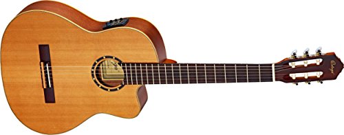 Die Rückseite der Gitarre besteht bei diesem Modell aus hochwertigem Mahagoniholz. Die Seiten wurden aus Nylon gefertigt und ihre Stärke ist Medium. Weiterhin verfügt die Ortega Konzertgitarre über 6 Seiten. Die Decke besteht aus Zedernholz in seidenmatt Optik. Gebaut ist sie außerdem mit einen 2 Wege-Halsstab. Die Mechaniken sind verchromt und somit besonders haltbar. Mit dieser Gitarre wird das Musizieren auf hohem Niveau möglich.