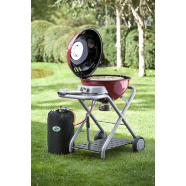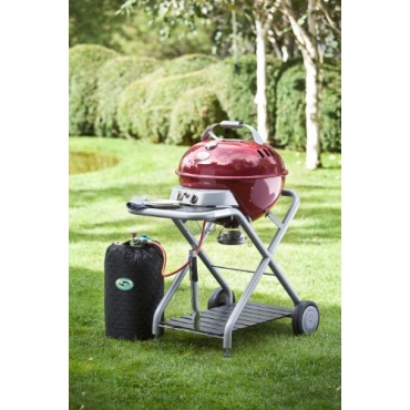 Der kleine Kugelgrill von Outdoorchef wird mit Gas betrieben und hat auch auf kleinem Raum Platz. Der runde Grill steht auf einem robusten Fahrgestell, das es ermöglicht, den Grill leicht zu bewegen. In elegantem Rot wirkt der Grill auf der Terrasse ebenso wie im Garten ausgezeichnet und lädt schon durch seine attraktive Optik zu einer Grillmahlzeit ein. Vor dem Grillrost findet auch eine kleine Ablagefläche Platz, auf der man das Grillbesteck ablegen kann.