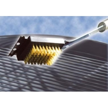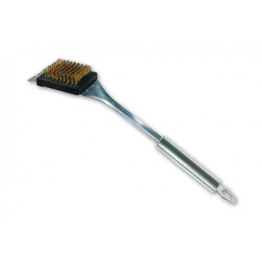 Diese Grillbürste besticht einfach durch die Qualität des gewählten Material. Die kurzen Messingborsten sind optimal in ihrer Härte gewählt und Messing hat die Eigenschaft kaum Beschädigungen an den Oberflächen des Grillrostes zu hinterlassen. Nur der Dreck wird aufgenommen und mit der Kunststoff Einlage geht man sicher über diese Oberflächen und führt die Messingborsten. So ist effektives Reinigen mit dieser Grillbürste eine sehr bequeme Art seinen Grill zu pflegen. Anschließend kann man die robuste Grillbrüste mit heißem Wasser reinigen, denn alle verwendeten Materialien sind sehr wiederstandsfähig.