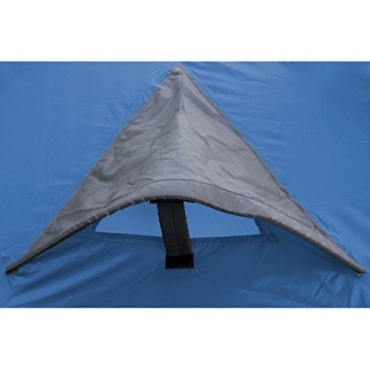 Durch den fest eingenähten Boden bleibt das Zelt auch bei schlechtem Wetter komplett trocken im Innenraum. Das kleine Vordach dient als Sonnen- und Regenschutz. Man kann davor die Schuhe darunter ausziehen, so dass das Zelt immer sauber bleibt. Bei Regen kann man das dahinter liegende Fenster trotzdem öffnen.