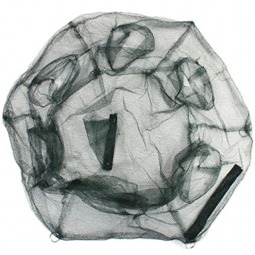 Dieser Multifunktionskescher ist rundherum geschlossen, so dass kein Fisch mehr herausschwimmen kann. In dem Netz befinden sich seitlich Öffnungen, durch die die gefangenen Tiere herausgenommen werden können. Die Fischsenke hat die Form eines Hexagons. Es kann ausgeworfen werden und an der richtigen Stelle wird es durch den Zug an einer Schnur geöffnet. Mit 3mm besitzt das Netz eine sehr geringe Maschenweite, so dass es sich wirklich für Kleinstlebewesen eignet.