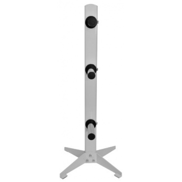 Alle gängigen Hantelscheiben im Durchmesser von 50/51 mm eignen sich für das Gerät. Verstaut werden diese auf 6 Ablage-Pins aus verchromtem Stahl, welche am Ende als Sicherung mit Kunststoff-Endkappen versehen sind. Hierbei können Hantelscheiben bis zu einem maximalen Gewicht von bis zu 280 kg verstaut werden. Dabei kommt die Standsicherheit nicht zu kurz, denn diese wird durch schwarze Gummi-Puffer Endkappen unter dem Rahmen gewährleistet. So hat man auch bei unebenen oder glatten Oberflächen Stabilität und sicheren Stand.