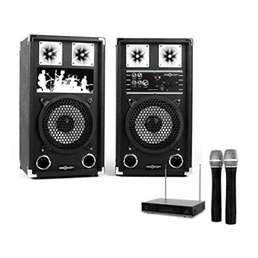 Die PA Karaoke-Anlage von Malone überzeugt durch seine leistungsstarken Batterien und die breit gefächerten Sendefrequenzen. Das Lautsprecher Paar der Karaoke Anlage ist schwarz und hat 400 Watt Leistung und zudem 20 Zentimeter Tieftöner. Die Anlage ist sowohl für den privaten Gebrauch, als auch als Abendunterhaltung in öffentlichen Bars geeignet. Das Lautsprecher Paar hat die Abmessungen 28 x 51,5 x 24 Zentimeter und ein Gewicht von 6,4 Kilogramm.