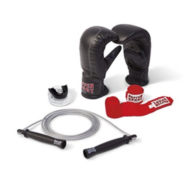 Auch Einsteiger und Fortgeschrittene können wie die Profis trainieren. Mit dem Set von Paffen Sport gelingt das Heimtraining. Ausdauer und Kraft lassen sich mit den Trainingsgeräten aufbauen. Zum Set gehören ein Paar Boxhandschuhe, ein Springseil, ein Zahnschutz und ein Paar Bandagen. Die Boxhandschuhe sind in den Größen S/M, M/L und L/XL erhältlich.