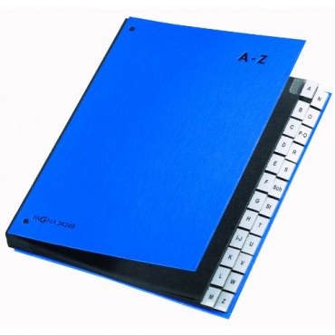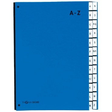 Der Pagna 24249-02 Pultordner 24-teilig ist gearbeitet für Betriebe die eine Alpha Ablage benötigen. Dabei erhalten Sie eine ausgefeilte Aufteilung nach Buchstaben wobei wenig genutzte Buchstaben mit anderen zusammen gelegt sind. Eine andere Aufteilung ist allerdings nicht möglich.