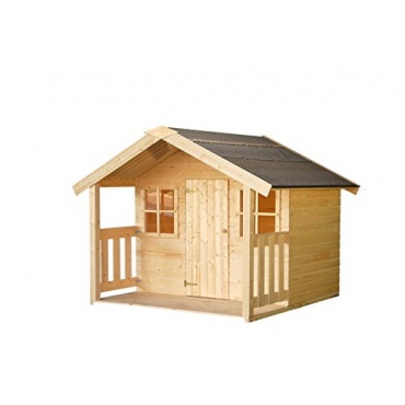 Das Kinderspielhaus von Palmako hat eine Grundfläche von 1,9 qm. Somit bietet es ausreichend Platz für Kinder zum Spielen. Das Haus hat eine Tür und zwei Fenster. Vor der Tür befindet sich eine Veranda mit Geländer.