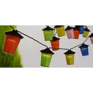 Manchmal geht es nicht um Beleuchtung, sondern nur darum eine festliche oder gemütliche Atmosphäre zu erzeugen. Für diesen Zweck ist die Lichterkette Laterne bestens geeignet. An der Lichterkette befinden sich auf einer Länge von 12 Metern insgesamt 20 Leuchteinheiten, die in Form von kleinen Laternen gestaltet sind. Um Eintönigkeit vorzubeugen, sind die Laternen abwechselnd in den Farben Grün, Blau, Orange, Gelb und Rot gehalten.