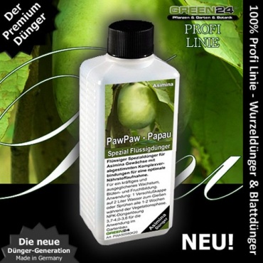 Liebhaber von Exoten lieben das Aussehen und den fruchtigen Geschmack der Indianerbanane. Ihre Pflanze benötigt einen nährstoffreichen Boden und es genügt sie 1-2 mal im Monat zu düngen. Dieser Spezialdünger ist für alle Asimina Arten zu gebrauchen. Er sorgt für eine optimale Nährstoffaufnahme und kräftiges, ausgeglichenes Wachstum. Der PawPaw-Dünger wird während der Vegetationsphase auf die Blätter gesprüht und zum Gießen verwendet.