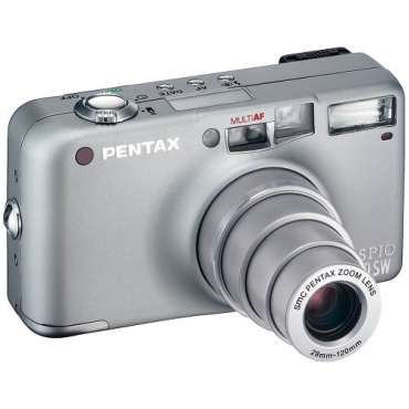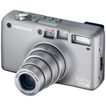 Die Pentax Espio 120-SW Kleinbildkamera ist ein besonders leichter und kompakter Fotoapparat. Es wurde ein qualitativ hochwertiges Zoomobjektiv mit einer Brennweite von 28 bis 120 Millimetern integriert. Dadurch eröffnen sich dem Fotografen viele Aufnahmeperspektiven vom klassischen Weitwinkel- bis zum Telebereich. Nahaufnahmen sind ab 50 Zentimeter Entfernung möglich. Eine integrierte Vorblitzfunktion vermindert den störenden "Rote-Augen-Effekt" bei Personen- und Tieraufnahmen.