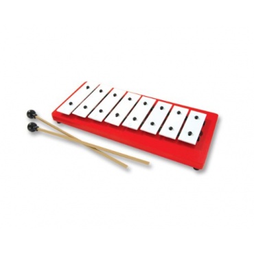 Das Percussion Plus 8-Ton-Glockenspiel ist mit acht Klangplatten ausgestattet. Die aus Metall gefertigten Platten sind 58 Zentimeter breit und verschaffen einen fabelhaften Ton. Das in rot weiss gelieferte Glockenspiel ist ein Blickfang.