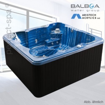 Der Whirlpool "Boston" in sky white von perfect-spa wurde aus hochwertigem Aristech Acryl gefertigt. Die Verkleidung besteht aus schwarzem glasfaserverstärktem Kunststoff. Der Wanneneinsatz ist auf einer stabilen Edelstahlkonstruktion aufgebaut. Die Wanne misst 2 x 2 m und ist 95 cm hoch und kann auch in den Boden eingelassen werden. Einem Home Wellness Tag mit rundum Entspannung steht mit diesem Whirlpool nicht mehr im Weg. Vielfältige Massagefunktionen über insgesamt 45 Jet-Massage-Düsen auf Sitz- und Liegeplätze im Whirlpool helfen dabei völlig entspannen zu können. Die Steuerung des Whirlpools erfolgt über eine Balboa GS523 Steuerung, die von einem weltweiten Marktführer im Bereich der Whirlpoolsteuerungen entwickelt wurde.