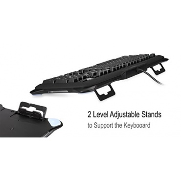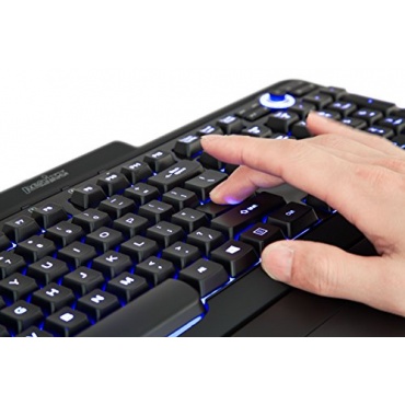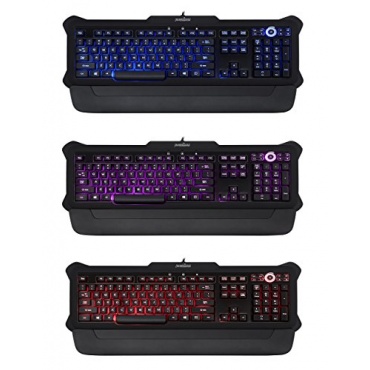 Die Perixx PX-1100-Tastatur ist mit drei farblichen Varianten bei der sparsamen LED-Beleuchtung erhältlich. Die rote, lilafarbene und blaue Beleuchtung ist mit einem praktischen Helligkeits-Kontrollrad individuell einstellbar und harmoniert perfekt mit dem schwarz-gummierten Gaming-Style-Design. Das 2 m lange Kabel mit einer USB-Schnittstelle ermöglicht größtmögliche Mobilität. Das solide Gewicht von 1,6 kg hält die Tastatur selbst beim starken Einwirken sicher am Platz. Über 20 Millionen Anschläge garantieren eine lange Lebensdauer.