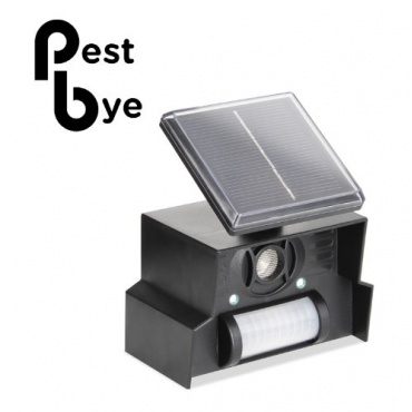 Die schwarze PestBye Ultraschall Wildtierabwehr wird mit Solar in Betrieb genommen und daher fallen keine Stromkosten an.