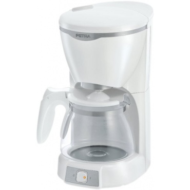 Der weisse Petra Electric KM 600.00 Kaffeeautomat hat ein Gehäuse aus Kunststoff und eine Kanne aus Glas. Die laskanne kann ganz einfach in der Spülmaschine gereinigt werden. Diese Filterkaffeemaschine von Petra kann bis zu zwölf Tassen Kaffee mit einem Tankinhalt herstellen.