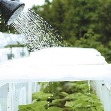 - Bewässerung über Dachmulden mit Abtropflöchern