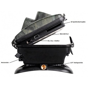 Die Wildkamera verfügt über einen eingebauten Temperatursensor, der die Umgebungstemperatur auf den Bildern abspeichert. Die Kamera ist wetterfest nach IP54 Standard. Sie eignet sich nicht nur zur Beobachtung von Wildtieren, sondern kann auch als Überwachungskamera eingesetzt werden. Die eingebaute CMOS Sensor hat eine Stärke von 5 Megapixel. Die Kamera verfügt zudem über einen TV-Ausgang und einen USB 2.0 Anschluss.