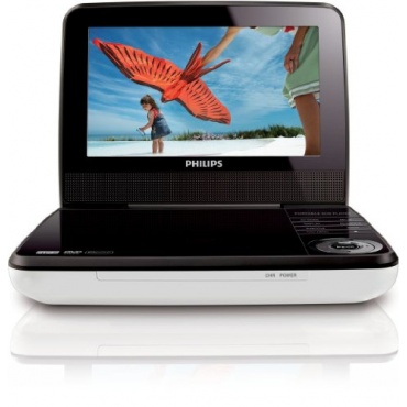 Der tragbare DVD Player PD7030 der Marke Philips eignet sich hervorragend zum Abspielen von Videos und Filmen auf Reisen oder im Auto. Aufgrund des mitgelieferten Autoadapters kann der Player einfach über den Zigarettenanzünder betrieben und mit Strom versorgt werden.