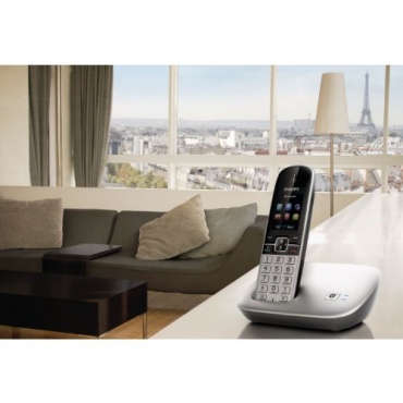 Das elegante digitale Premium Schnurlostelefon von Philips gewährt die Möglichkeit, alle Anrufe sowohl mobil als auch aus dem Festnetz auf einem Gerät zu vereinen. Das Telefon hat eine große Speicherkapazität und man kann 1200 Kontakte mit jeweils drei Nummern speichern. Das gerät ist mit einem Anrufbeantworter ausgestattet, der Nachrichten von bis zu 60 Minuten speichern kann, die man dann leicht abrufen kann.