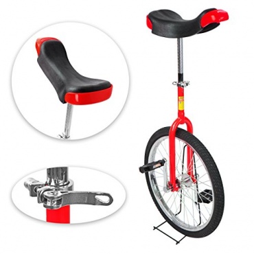 - tolles Einrad im klassischen Stil, kann schon von Kindern ab etwa fünf Jahren genutzt werden, bietet viel Spaß beim Fahren, Sattel einfach und unkompliziert in der Höhe verstellbar, sehr stabil gebaut, sehr leichtes Einrad, gutes Preis-Leistungs-Verhältnis
