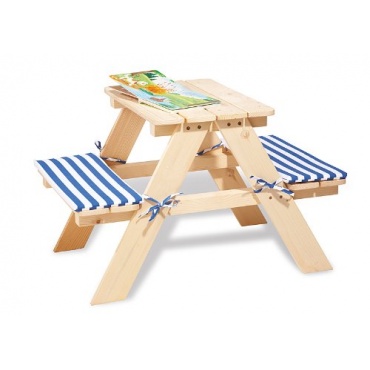 Ob für das Kinderzimmer, für die Terrasse oder für den Garten, die Kindersitzgarnitur Nicki vom Hersteller Pinolino ist vielseitig einsetzbar. Da die Kindersitzgarnitur ohne einen Holzschutz geliefert wird, kann man diese dauerhaft erst im Garten aufstellen, wenn man sich um den Holzschutz gekümmert hat. Die Kindersitzgarnitur bietet ausreichend Platz und ist leicht im Gewicht wie man der weiteren Beschreibung entnehmen kann.