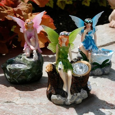 Die Gartenfiguren verfügen über eine LED-Beleuchtung, die solarbetrieben wird. Durch die Sonneneinstrahlung speichert das Panel tagsüber die Sonnenenergie um bei der Dämmerung und abends zu erleuchten und die Gartenwege besser sichtbar zu machen. So entsteht abends im Garten ein märchenhaftes Bild. Die Elfen sind aus hochwertigem Polyresin und Acryl gefertigt. Diese Figuren können auch problemlos im Wintergarten auf einem Blumenregal als Dekorationsartikel oder auf dem Balkon als besonderes Schmuckstück aufgestellt werden.